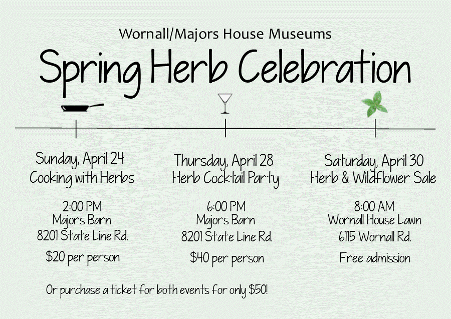 The Herb and Wildflower Sale at the John Wornall House is a beloved annual tradition in the community. Join us to buy wildflowers from the Missouri Wildflower Nursery and locally grown herbs for your garden. Purchase multiple varieties of herbs and wildflowers, stroll the Wornall Herb Garden, and get herb-growing advice from the Wornall gardeners. Arrive early for the best selection!